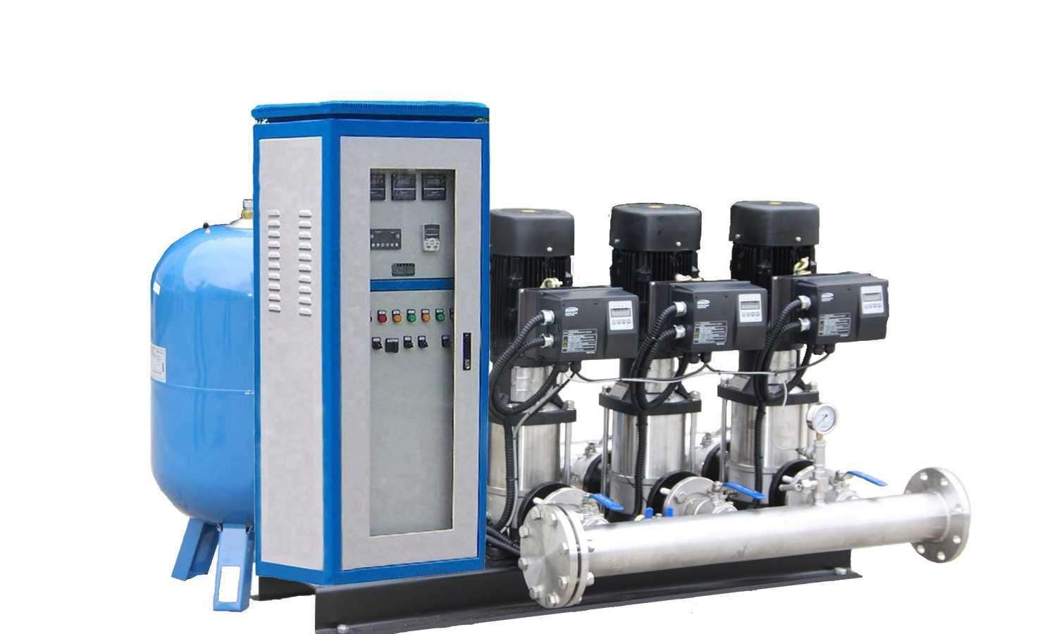- 主要包括水泵機組、測壓穩(wěn)壓罐、壓力傳感器、變頻控制柜等,能始終維持壓力表壓力(即用戶管網(wǎng)水壓)等于用戶設(shè)定值。