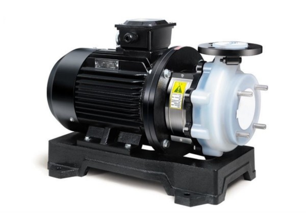 單級(jí)臥式氟塑料離心泵,配加長軸電機(jī),軸向入口和徑向出口,電機(jī)軸與葉輪為直聯(lián)式,過流部件均采用氟塑料(F26、F46)。