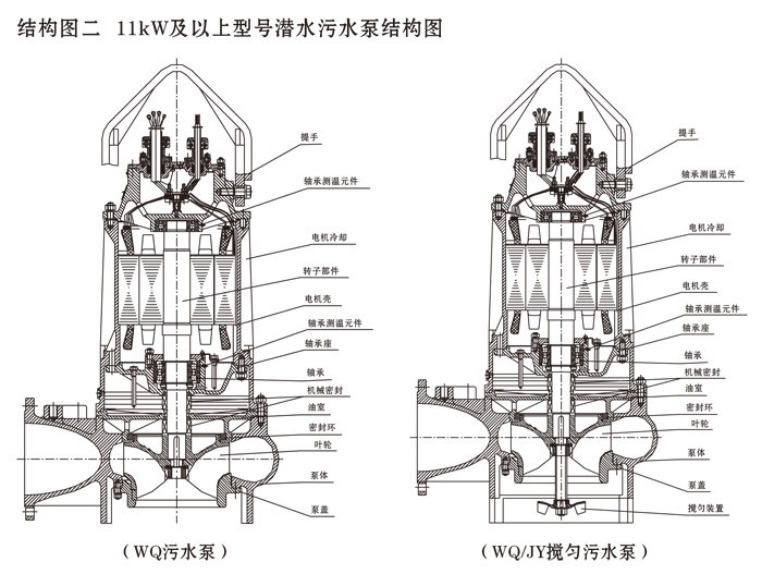?、?可生產(chǎn)功率在0.55~2.2kW的單相220V潛水污水泵;